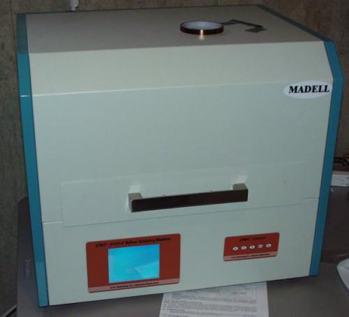 正如你所看到的,托盤非常大。 烤箱內(nèi)置風(fēng)扇用于冷卻。 元件是紅外線,加熱速度非常快,可以非常接近地監(jiān)測(cè)溫度。 纖細(xì)的棕色是溫度傳感器,應(yīng)該貼在每個(gè)回流的PCB上 - 這是我們從未做過的事情。