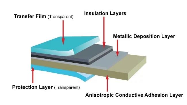 屏蔽膜由覆蓋層表面上的附加層選擇性專用層壓板組成。 這些電影的開(kāi)發(fā)是為了滿足手機(jī)/數(shù)碼相機(jī)和攝像機(jī)市場(chǎng)的需求。 與銀墨一樣,覆蓋層中的選擇性開(kāi)口暴露接地電路并形成互連位置。 屏蔽膜具有由導(dǎo)電粘合劑,金屬沉積層和隔離層組成的3層結(jié)構(gòu)。