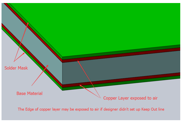 另一個(gè)問(wèn)題是,如果設(shè)計(jì)師想把銅多邊形倒在電路板上,那么電路板邊緣的銅就會(huì)暴露在空氣中。 當(dāng)電路板通過(guò)波峰焊過(guò)程時(shí),這會(huì)增加短路的可能性。 熔化的焊料在通過(guò)焊料罐時(shí)會(huì)濺到電路板的邊緣。 焊料將粘在電路板的邊緣,并在頂層和底層銅層之間形成焊橋。